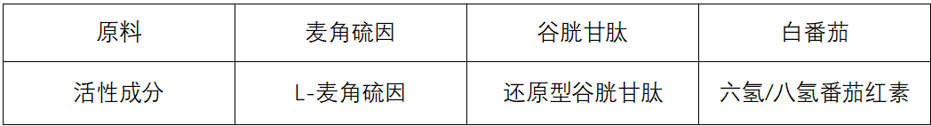 目前市面上主流的口服美白成分有谷胱甘肽、麦角硫因、白番茄等,前两者的宣传点主要集中在“抗氧化、清除自由基”上,而后者主打卖点为“抗光”(表1)。各大中小品牌在概念上都存在着老化的问题,美白产品在原料上趋于相同,致使消费者对这些雷同的卖点表现出了疲劳,市场亟需新的口服美白成分,为乏力的口服美容赛道注入强心剂。这个答案或许可以在美妆领域找到。