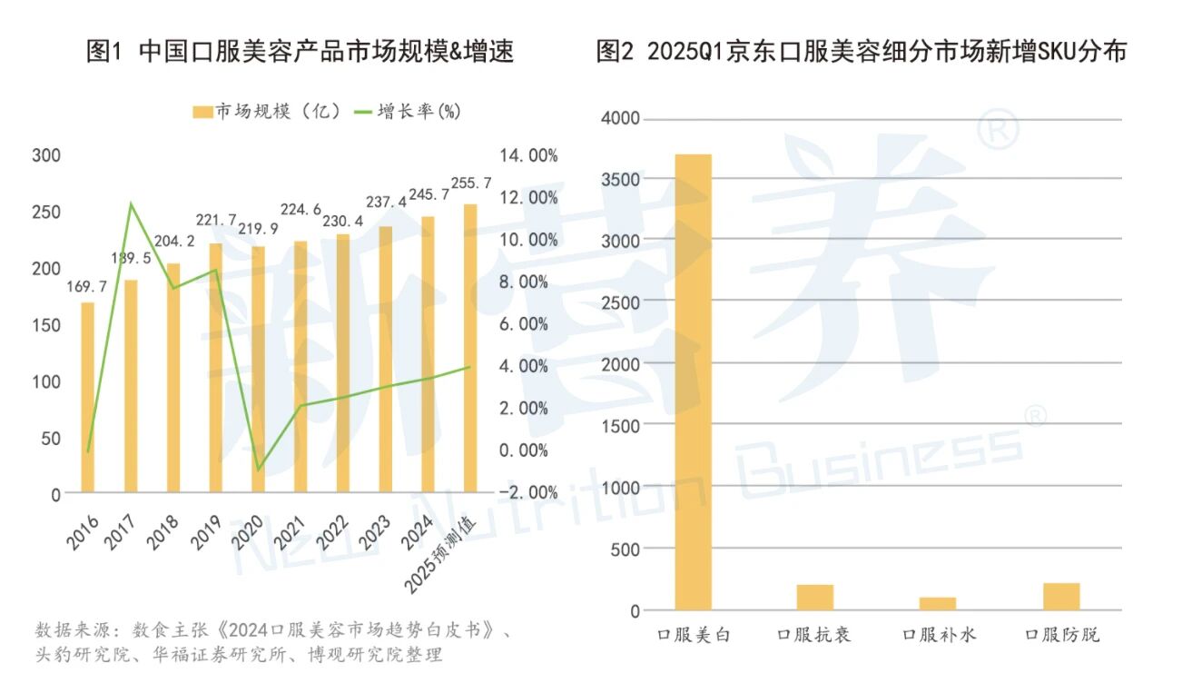当“早C晚A”成为基础护肤标配,当内服美容从“小众选择”变为“全民刚需”,消费者对“高效抗衰、精准美白”的需求正推动整个行业向“科学实证”转型。《2025中国口服美容市场研究报告》显示,2025年中国口服美容市场进一步扩张、有望突破250亿元,是东亚第二大口服美容产品消费市场。与此同时,人们对抗衰、美白消费需求持续增长,成为口服美容主要细分市场。