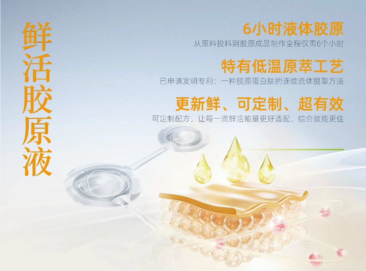 瑞邦生物的技术突破并非单一环节优化,而是从原料到成品的全链条把控,其中“6小时鲜制”与“低温原萃”构成了鲜活胶原的核心技术支撑。该流程从原料投料到胶原成品制作全程仅需6个小时,较传统工艺大幅缩短生产周期,最大限度减少胶原蛋白肽在生产过程中的活性损耗,从时间维度锁定新鲜能量。而作为专利核心的低温原萃工艺,更从温度维度保障品质——通过低温环境下的连续流体提取技术,避免高温对胶原结构的破坏,同时突破传统工艺局限,在提取效率与产品纯度上实现双重优化。