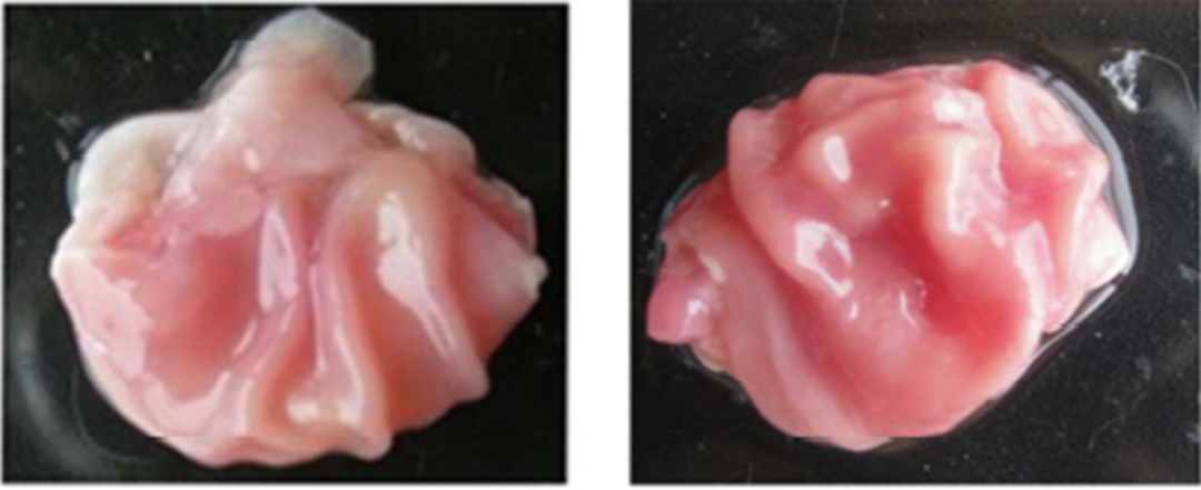 图2 非CaF处理和CaF处理组小鼠胃部形态对比