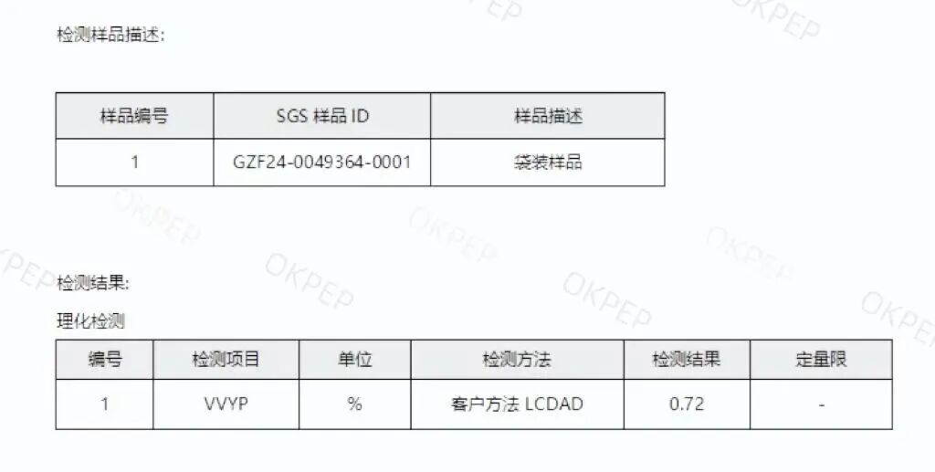 VVYP含量达到0.72%,高于国标0.5%要求