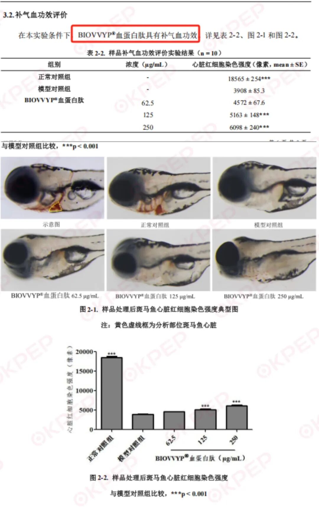 BIOVVYP®血蛋白肽实验结论1,针对气血健康益处: