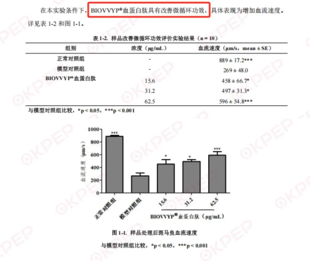 BIOVVYP®血蛋白肽实验结论2,针对微循环益处: