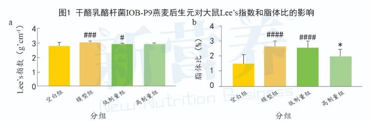 图1 干酪乳酪杆菌IOB-P9燕麦后生元对大鼠Lee’s 指数和脂体比的影响