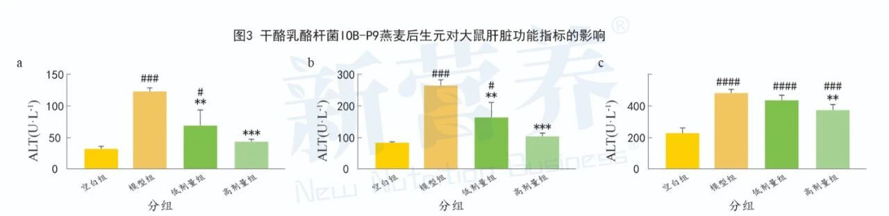 图3 干酪乳酪杆菌IOB-P9燕麦后生元对大鼠肝脏功能指标的影响