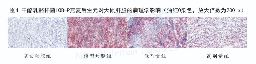 图4 干酪乳酪杆菌IOB-P9燕麦后生元对大鼠肝脏的病理学影响(油红O染色,放大倍数为200 x)