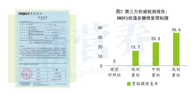谱尼测试报告也表明,岩藻多糖(0.2g/天)对胃黏膜损伤的修复率可达36%以上(高剂量组)。(见图2)