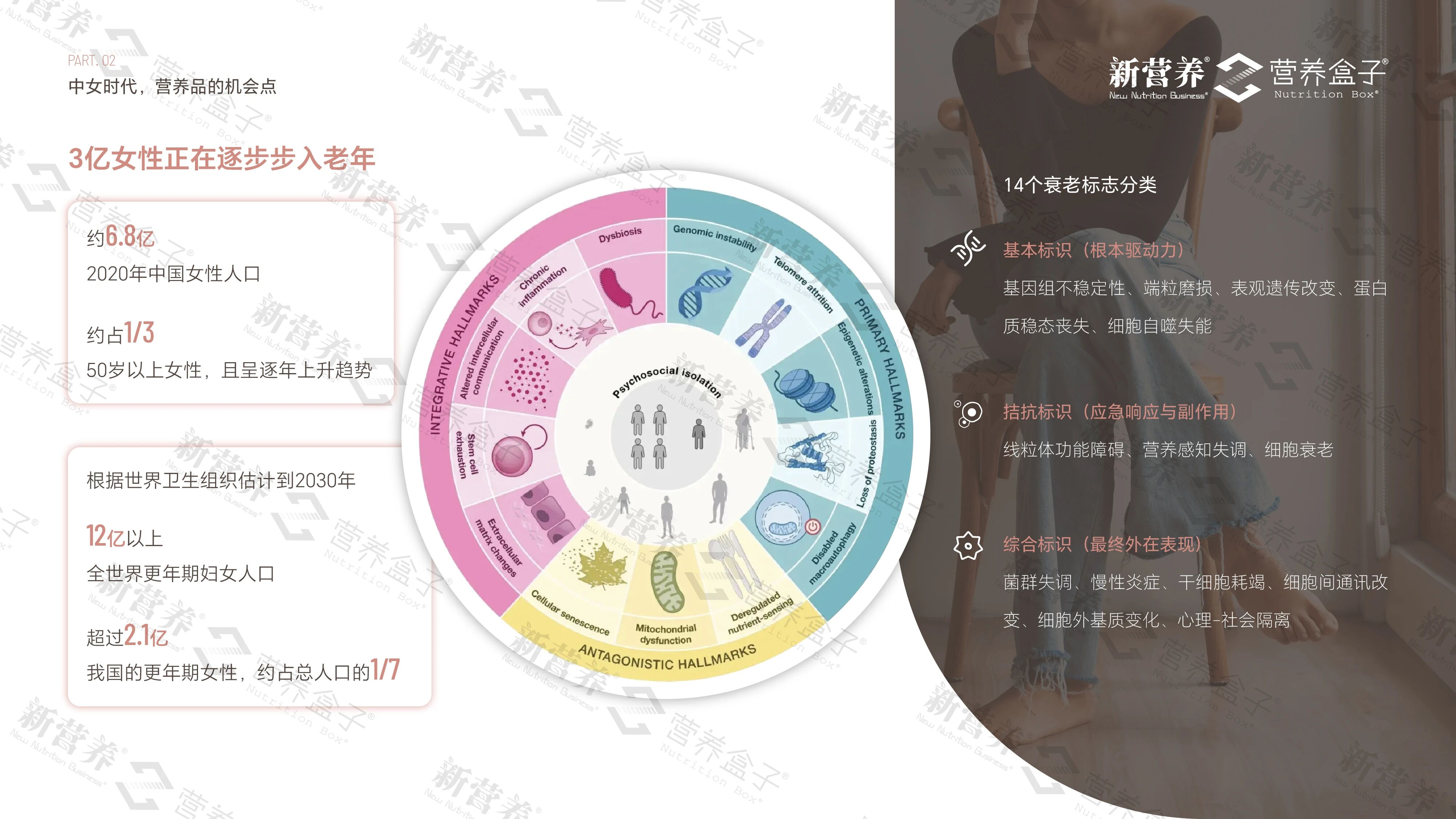 “中女时代”的到来,让更年期健康成为女性营养品市场的核心增长点。世界卫生组织预测,2030年全球更年期妇女人口将超12亿,中国更年期女性将达2.1亿,约占总人口的1/7。