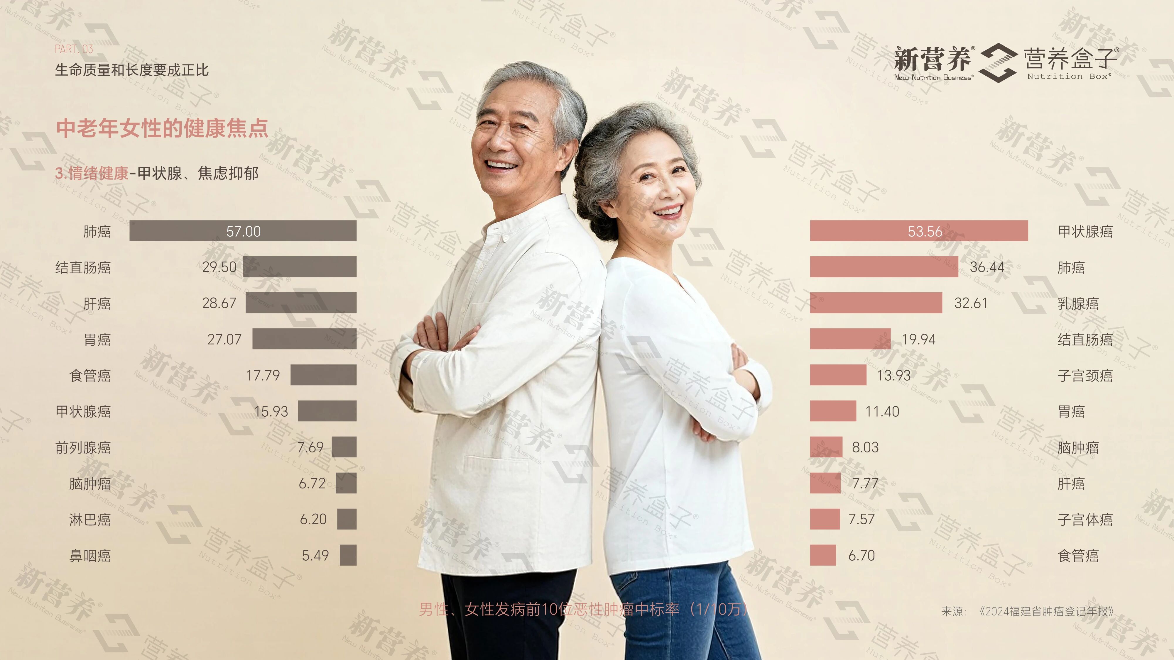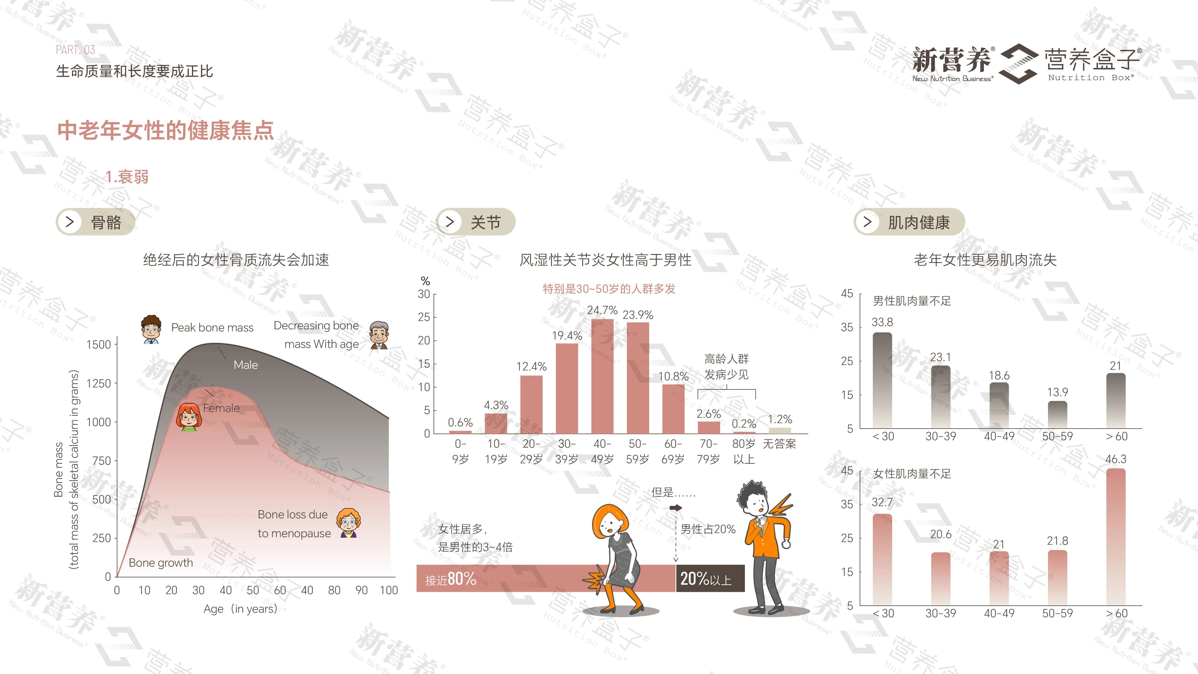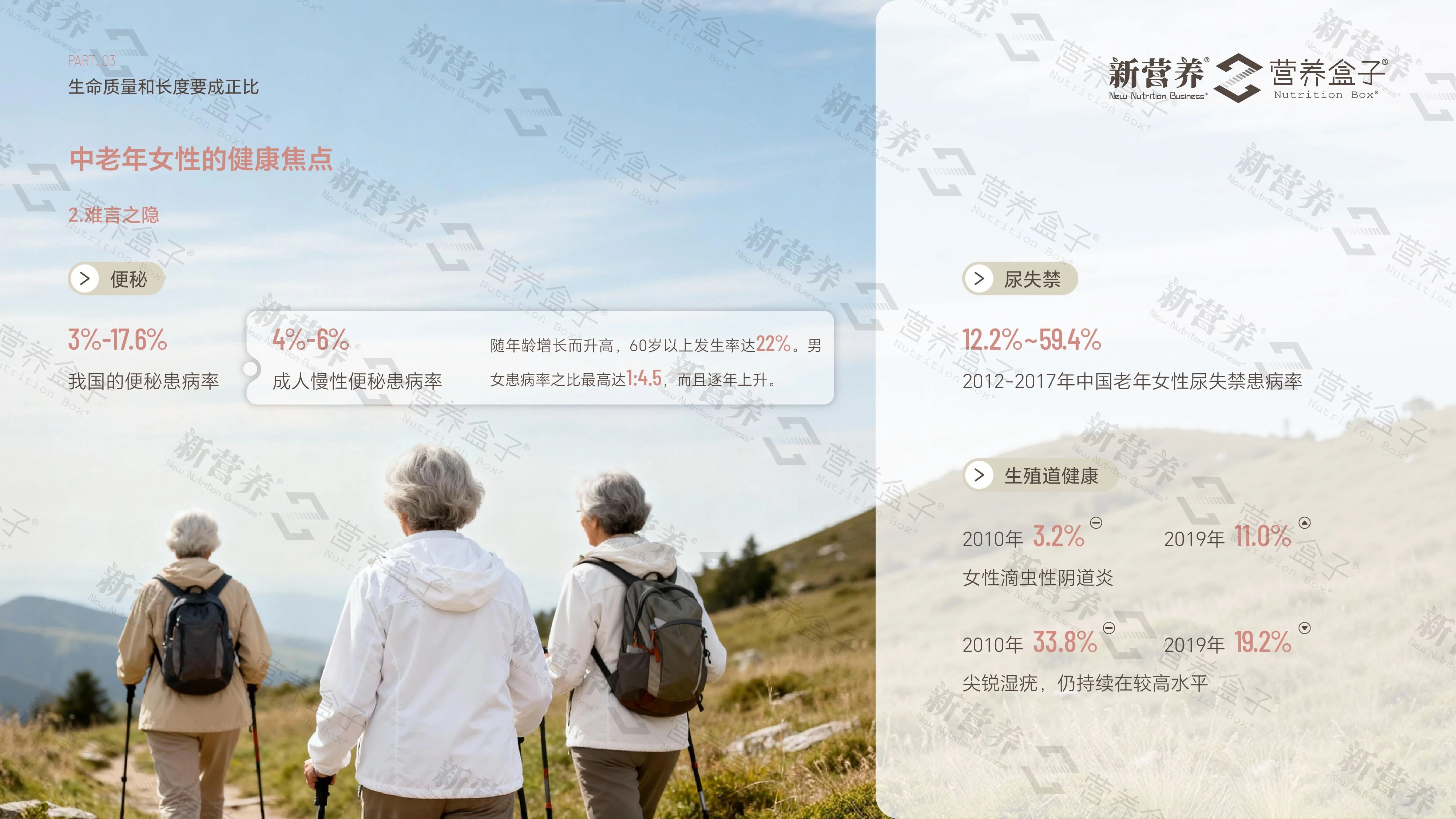 随着我国即将进入超级老龄化时代,中老年女性的健康需求进一步细化,“生命质量和长度成正比”成为核心诉求。这一群体面临的健康关注点集中在三大领域: