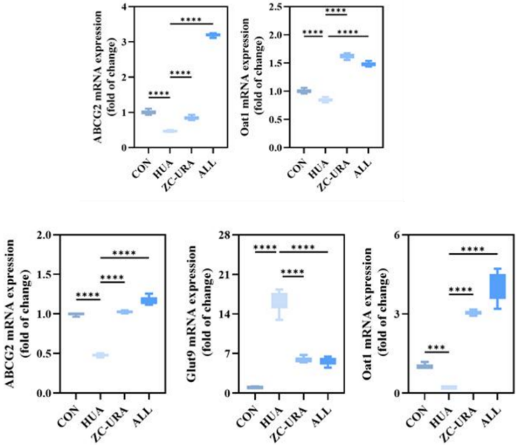 尿酸的排泄主要依赖肾脏和肠道两大途径,降小益®乳酸菌粉通过调节转运蛋白表达,双向打通排泄通路。在肠道通路中,上调结肠中ABCG2蛋白的表达,将尿酸从血液排入肠道;在肾脏通路中,上调排泄蛋白ABCG2和Oat1的表达,同时下调重吸收蛋白Glut9的表达,促进尿酸通过尿液排出体外[7]。