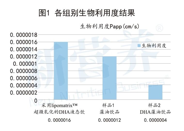 不仅如此,产品含量和生物利用度也得到了显著提升。每袋10ml就含有200mg藻油DHA。第三方检测机构通过对不同剂型DHA进行CACO-2细胞生物利用度检测并进行统计学分析后发现,采用LipoMatrixTM超微乳化技术后的DHA液态饮分散性好,利用度提升300%,远高于同组对照样品。