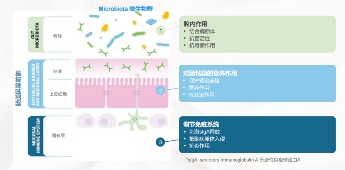 第三,Lynside®可以刺激分泌性免疫球蛋白A(slgA)的释放,帮助抵御病原体的入侵,从而增强肠道的免疫防御能力。