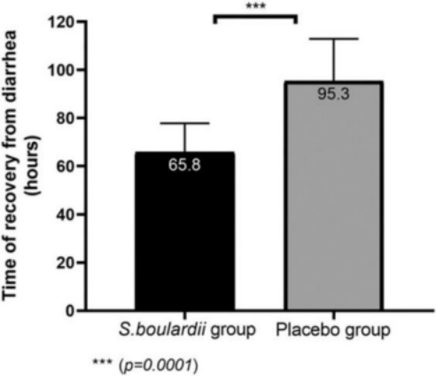 图源:Mourey F, Sureja V, Kheni D, et al. A Multicenter, Randomized, Double-blind, Placebo-controlled Trial of Saccharomyces boulardii in Infants and Children With Acute Diarrhea. Pediatr Infect Dis J. 2020;39(11):e347-e351.
