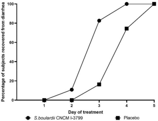 结果显示,与安慰剂组相比,CNCM I-3799组患儿的腹泻总持续时间显著缩短达29.5小时。在干预第3天,益生菌组中有82.6%的患儿实现腹泻康复,而安慰剂组仅有16.3%达到相同标准。这些数据表明,Lynside® 酿酒酵母CNCM I-3799不仅能在短期内有效缓解急性腹泻症状,还可能对肠道健康产生长期积极影响,有助于降低腹泻复发风险,进一步印证了其在支持肠道与免疫健康方面的综合价值。