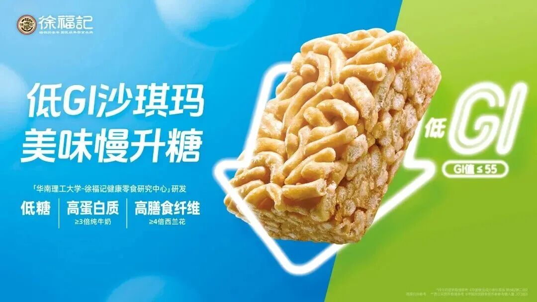 薯片、膨化饼干等零食品类也是膳食纤维产品的竞争主战场之一。2025年,徐福记强势联合华南理工大学,共同研发包揽三重认证的低GI沙琪玛。通过选用低GI食材、优化低糖配方、强化高蛋白及膳食纤维含量,打破了传统沙琪玛“高糖、高油”的固有印象,提供了“美味又营养”的新选择。