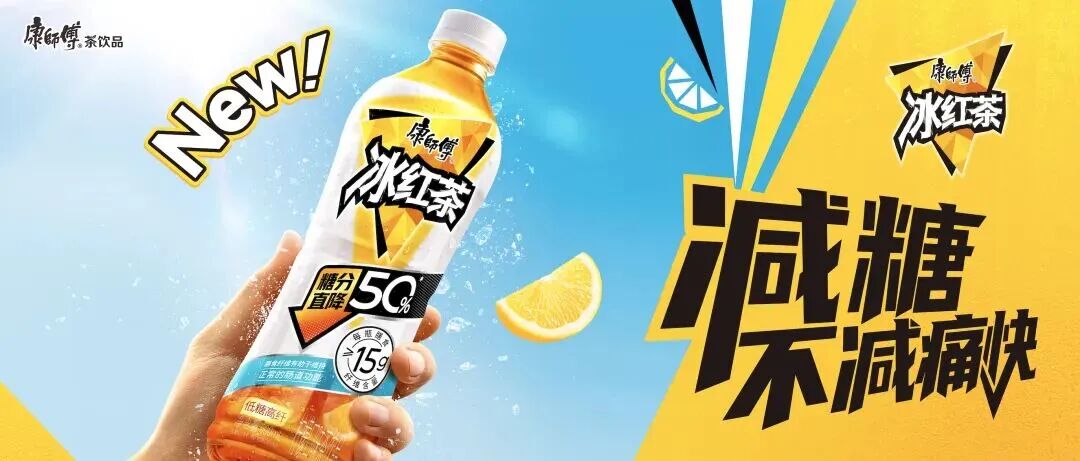 康师傅在2025年夏天打出“低糖高纤”这张王牌,一方面,糖分直降50%,保留酸甜痛快、清爽口感同时,做到好喝低负担;另一方面,每瓶膳食纤维含量≥15g,可满足成人日常所需约60%膳食纤维。