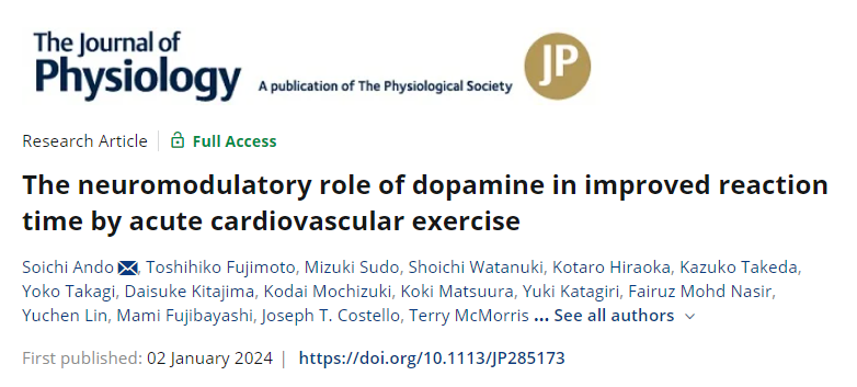 近日,日本东北大学的研究人员在《The Journal of Physiology》期刊上发表了一篇题为"The neuromodulatory role of dopamine in improved reaction time by acute cardiovascular exercise"的研究论文。
