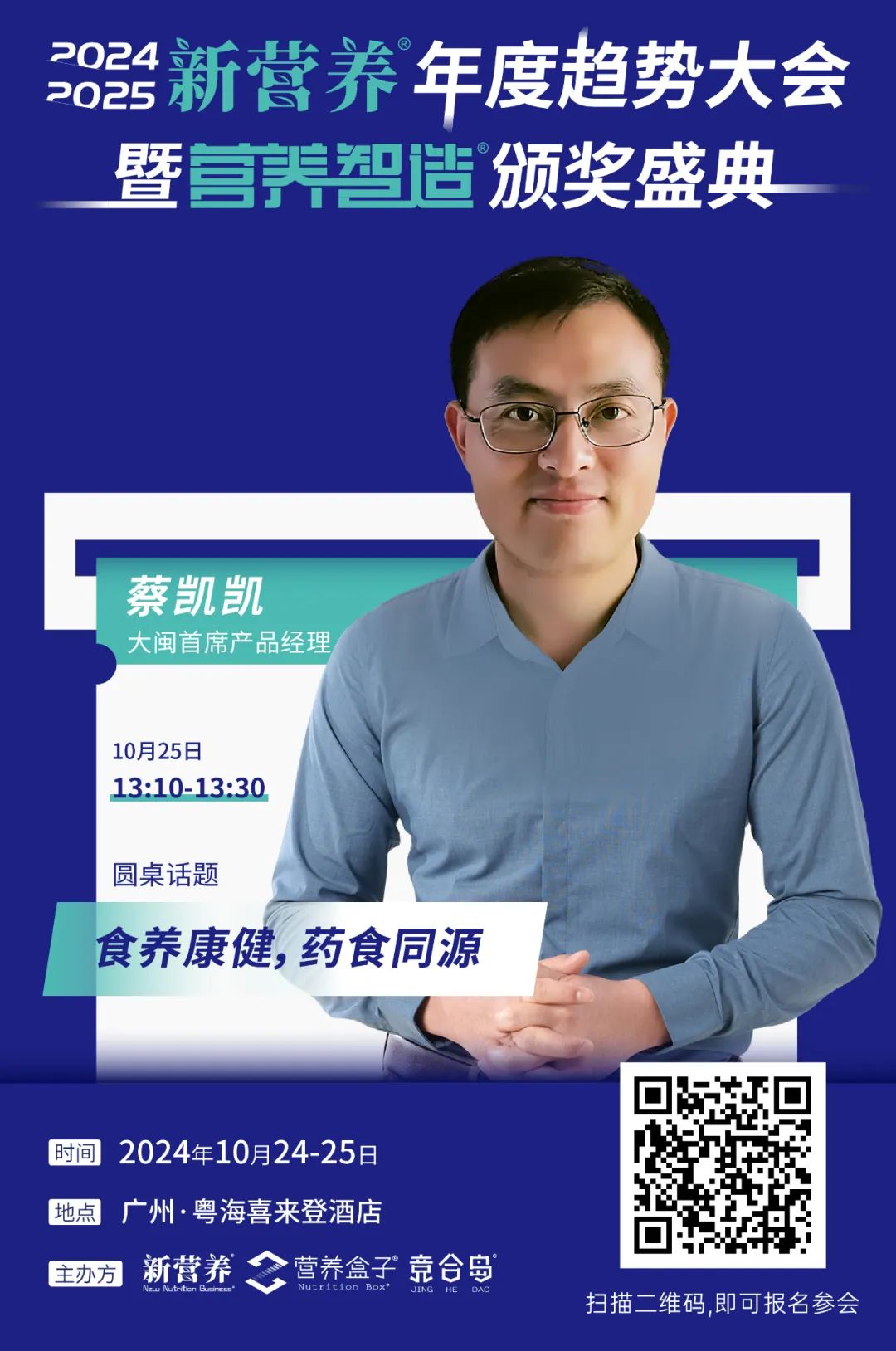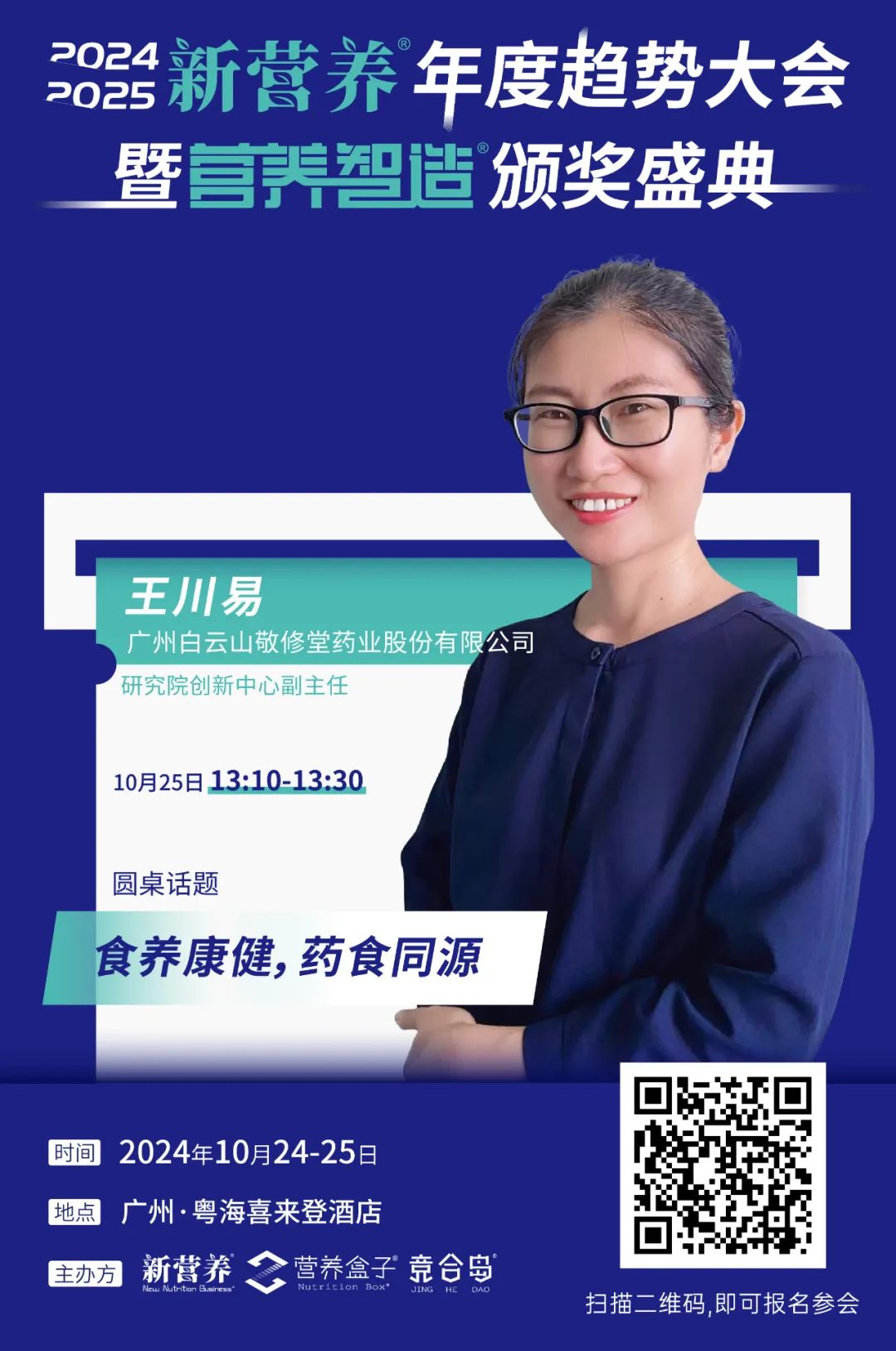 如今,当我们在新时代回望过去,在山西这片古老的土地上,一种新的健康理念正在悄然兴起——药食同源。这一古老智慧与现代科学的结合,正引领着中医药文化的传承与创新,为公众的健康生活注入新的活力。10月24-25日,2024-2025新营养年度趋势大会暨营养智造颁奖盛典上,我们将聚焦“药食同源”,将和各位嘉宾,携手探索药食同源的未来之路,共绘健康养生的宏伟蓝图。