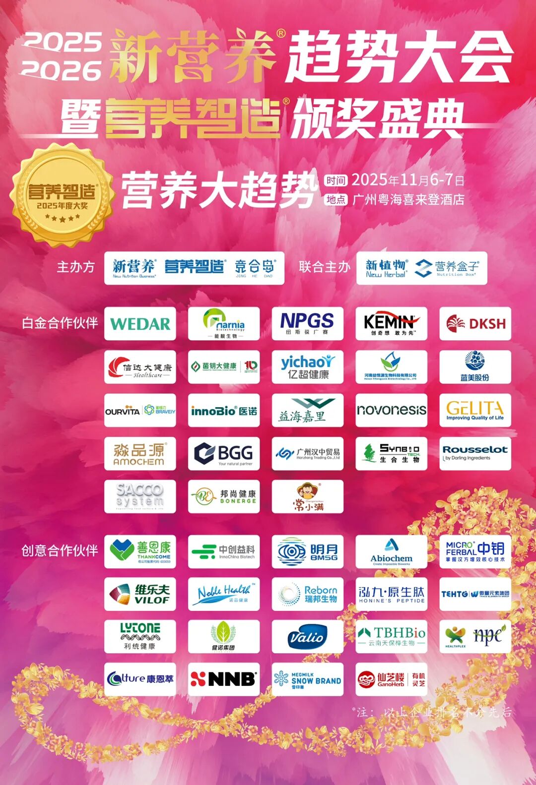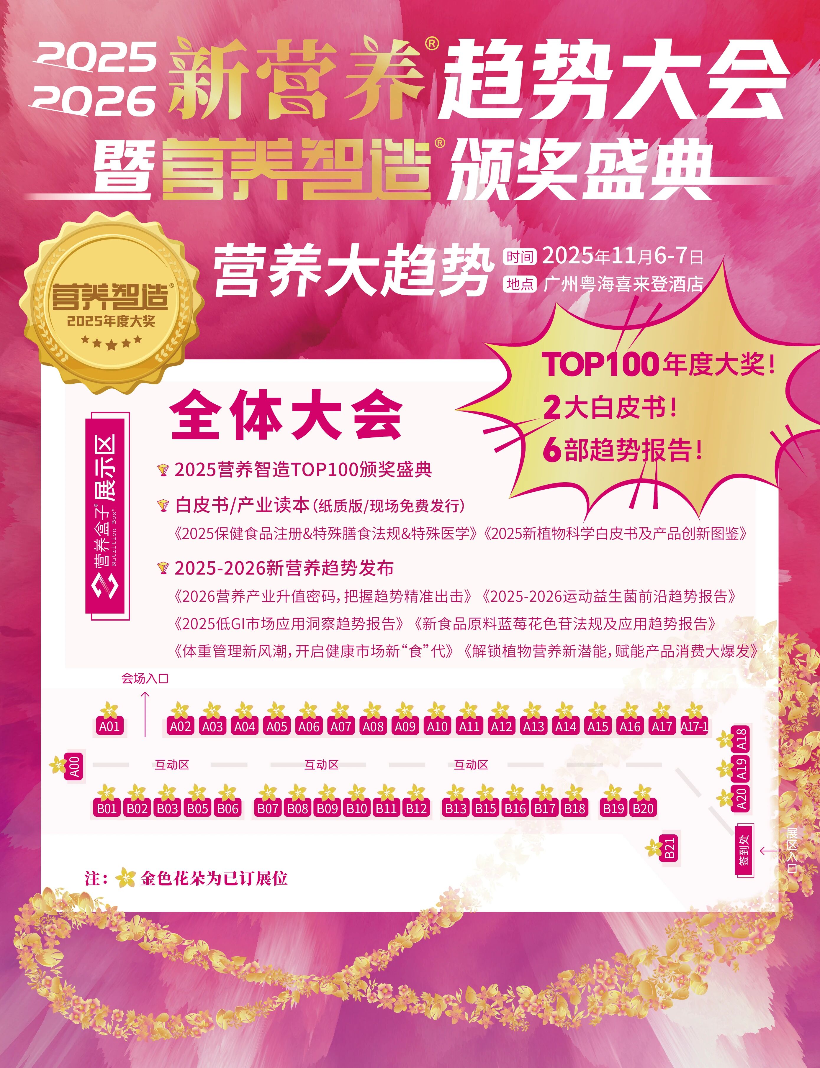 11月6-7日,2025-2026新营养趋势大会暨营养智造颁奖盛典将在广州隆重举行。聚焦营养产业增长密码,共探行业未来趋势。与业界精英共襄盛举,解码营养智造,助力企业持久发展,领跑新营养时代!下一站,广州等你!