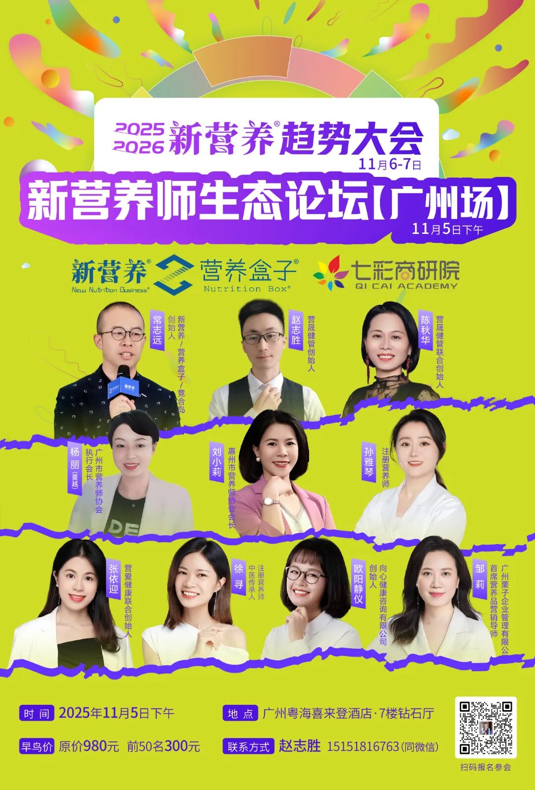 11月6-7日广州新营养趋势大会!30+演讲、2