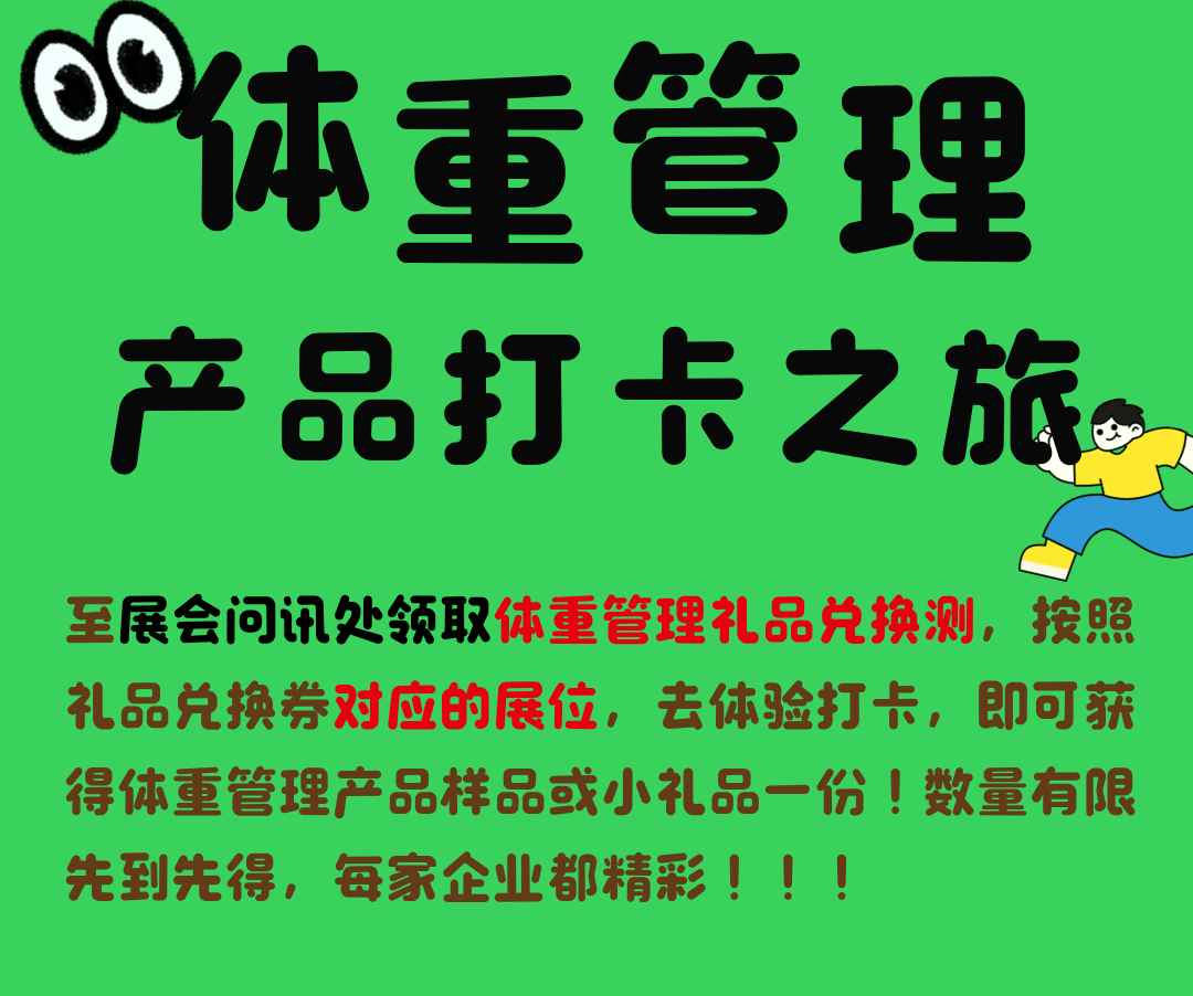 响应“体重管理年”政策东风,未来发展趋势一片向好NHNE汇聚全球领先的体重管理创新产品,“健康护照”步数挑战赛、体重管理产品打卡路线活动等活动,在互动你验中抓住行业风口,同时30+款精美礼品、样品带回家!