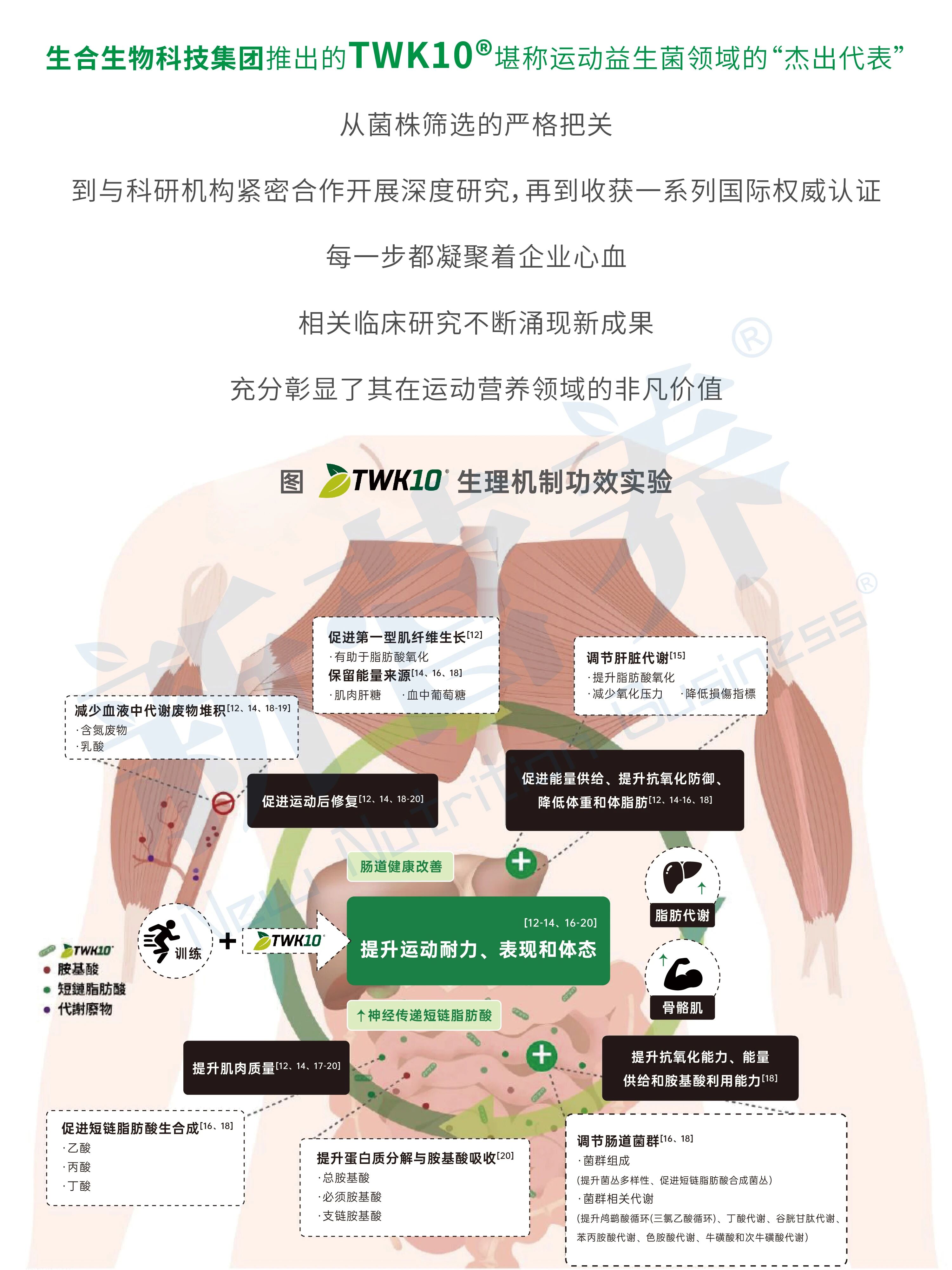 此外她还进一步分享了精准营养趋势下TWK10®的多场景应用价值,TWK10®可以维持肌肉质量和力量,减缓中年阶段开始的肌肉流失速度,可以为未来的健康老龄化储备宝贵的“肌肉银行”;此外,TWK10®还可以提升专业运动员的运动表现和耐力,也可以为运动健身族人群肌肉健康提供助力。未来,生合生物将持续以科学创新为核心,深化TWK10®在运动营养、健康老龄化与代谢健康等多元领域的应用,为市场带来更安全有效的解决方案。