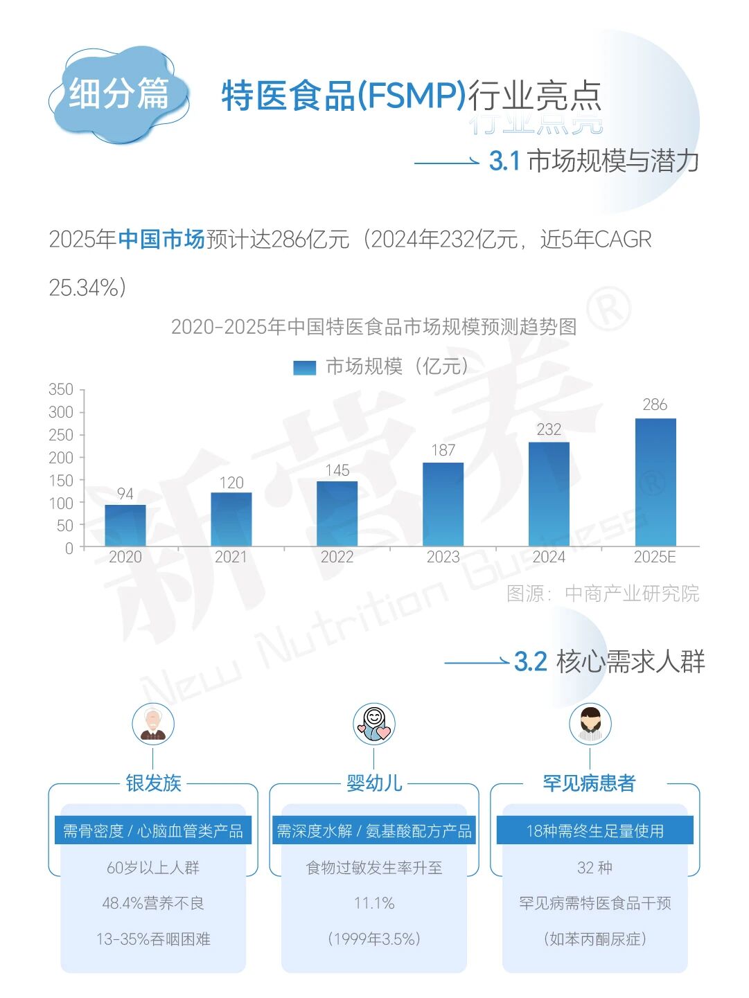 为助力企业在合规中稳健前行,11月6日新营养趋势大会期间,新营养合伙人/营养盒子总经理王璞珍发布了《2025特殊膳食法规、保健食品与特医食品行业发展白皮书》,分享了保健食品注册备案新规、特医食品监管升级以及婴幼儿配方标准调整等重点政策。同时,针对空间广阔的特医食品蓝海,还深入剖析了其竞争格局、临床需求、创新方向与产品案例,为企业的战略布局与创新决策提供有力参考与支持。