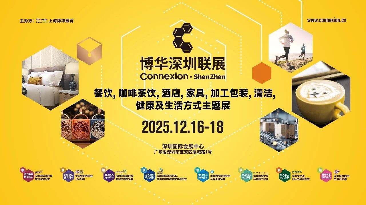 本届展会将携手同期举办的Hi&Fi健康原料、食品配料展、食品及加工包装展、酒店餐饮展、酒店家具展、商业空间展及生活方式展等博华集团旗下的多项大型展会,共同构筑“博华深圳联展(Connexion Shenzhen)”。