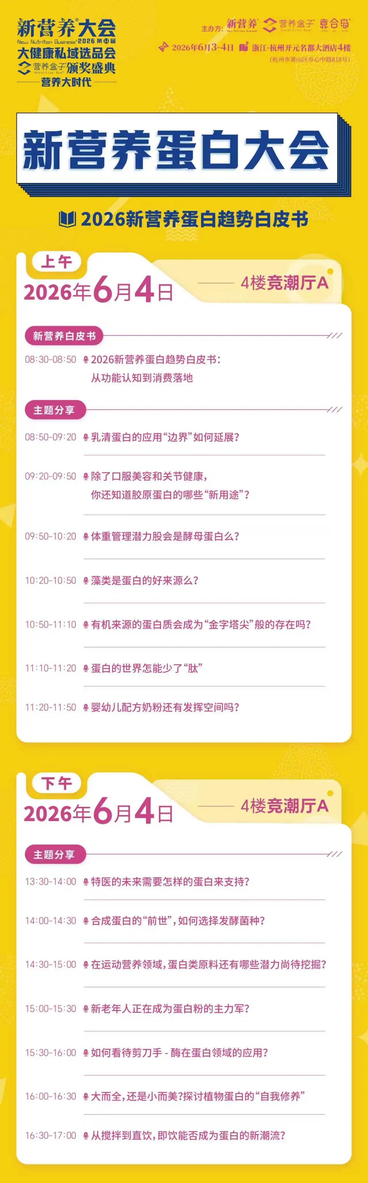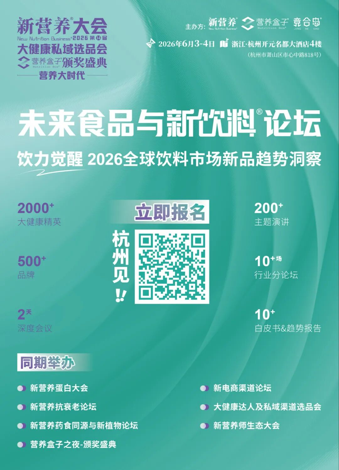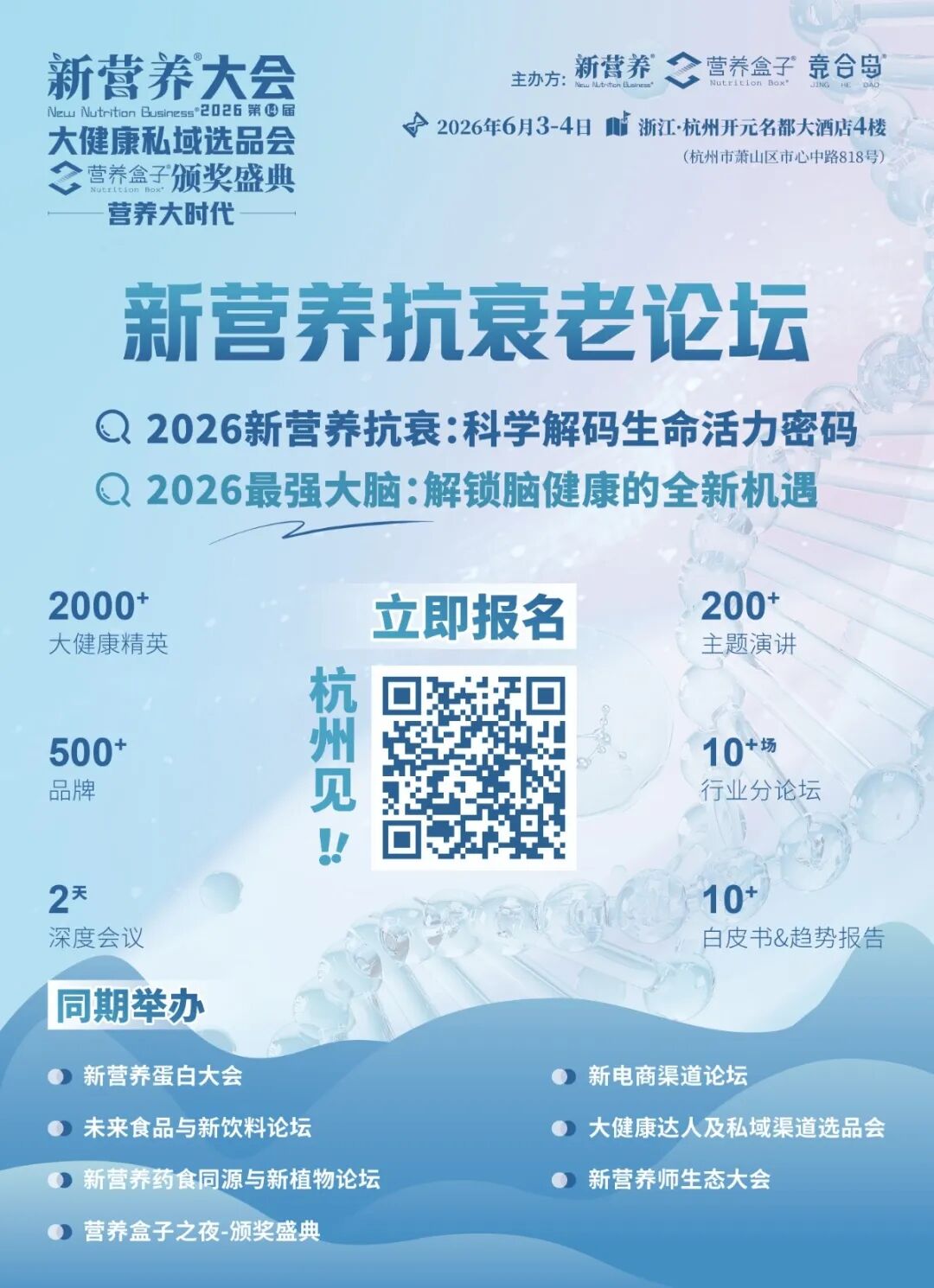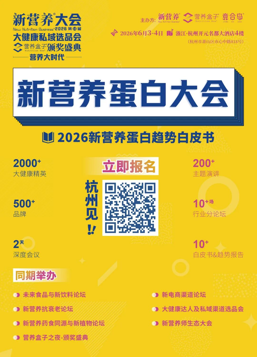 营养大时代!聚焦蛋白·抗衰·药食同源·未来食品·新饮料·营养师·渠道选品,2026新营养大会,6月3-4日,杭州见!