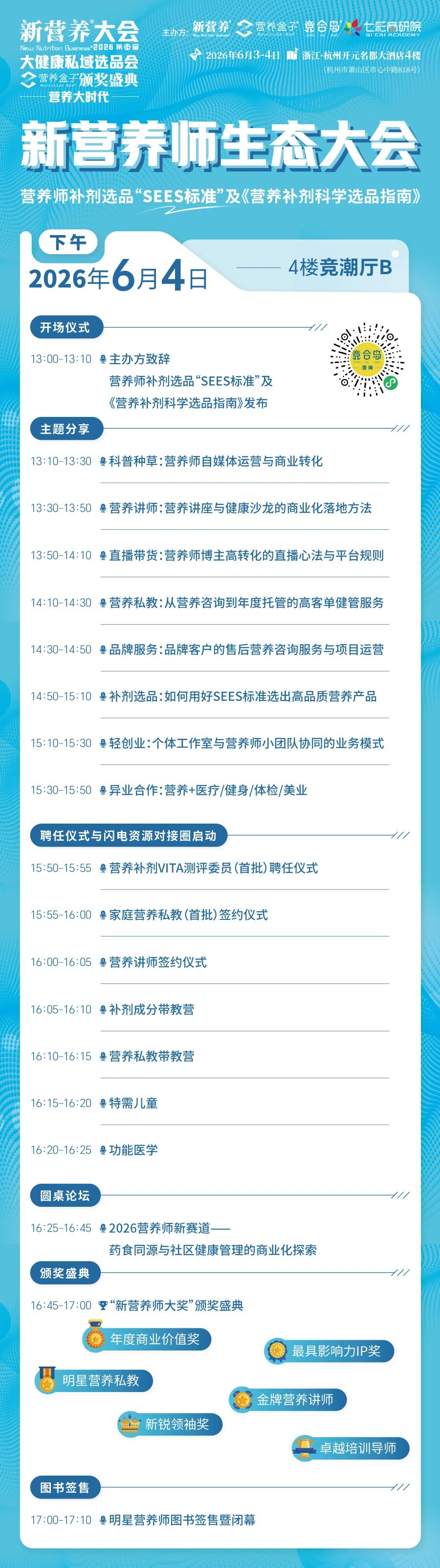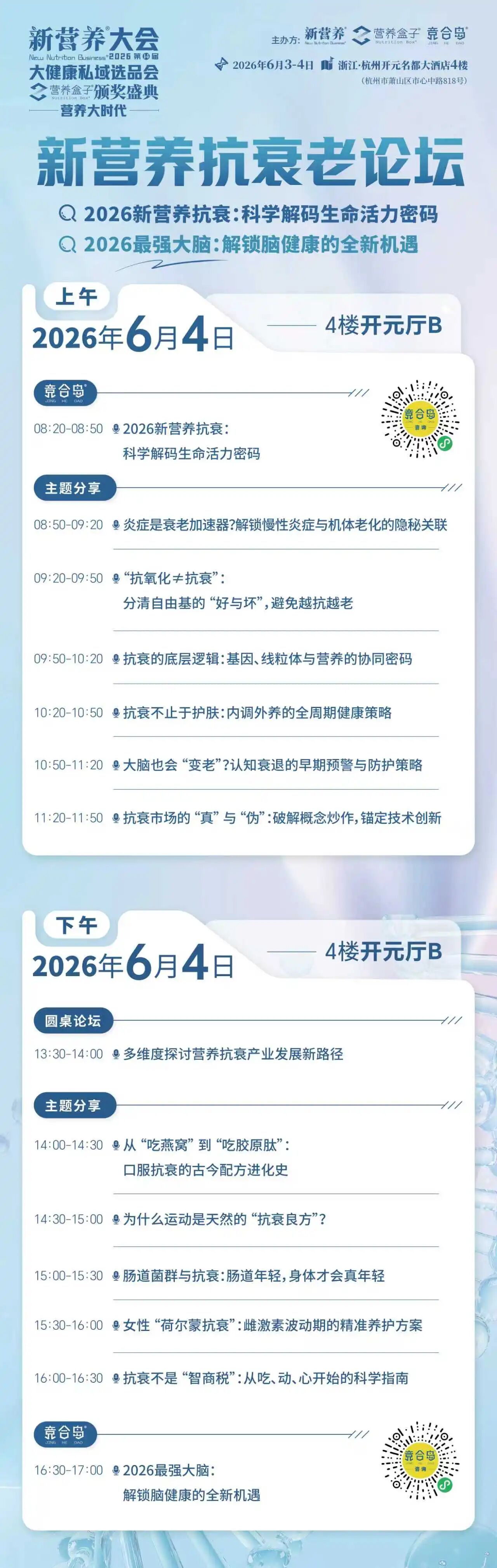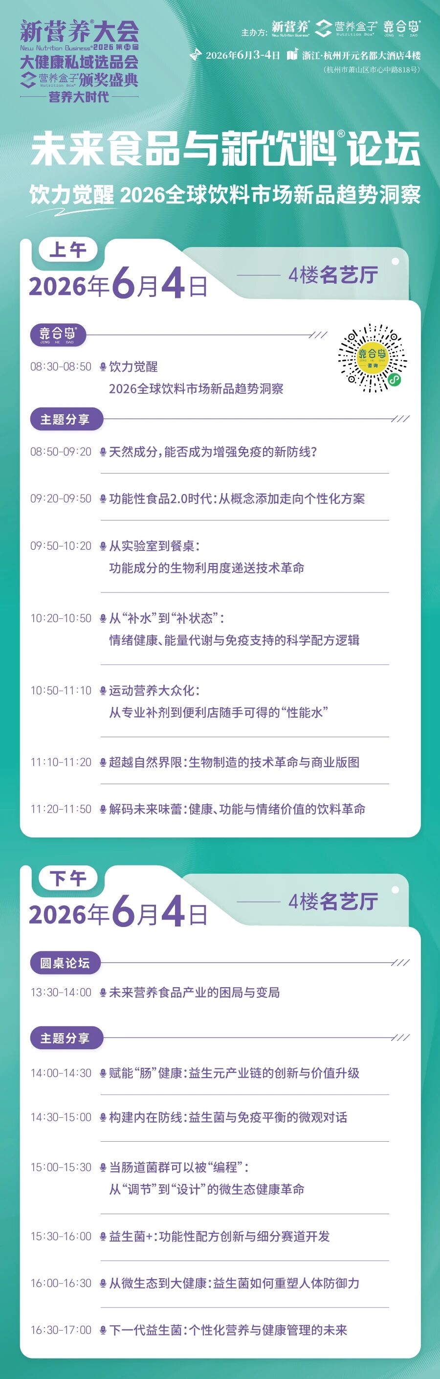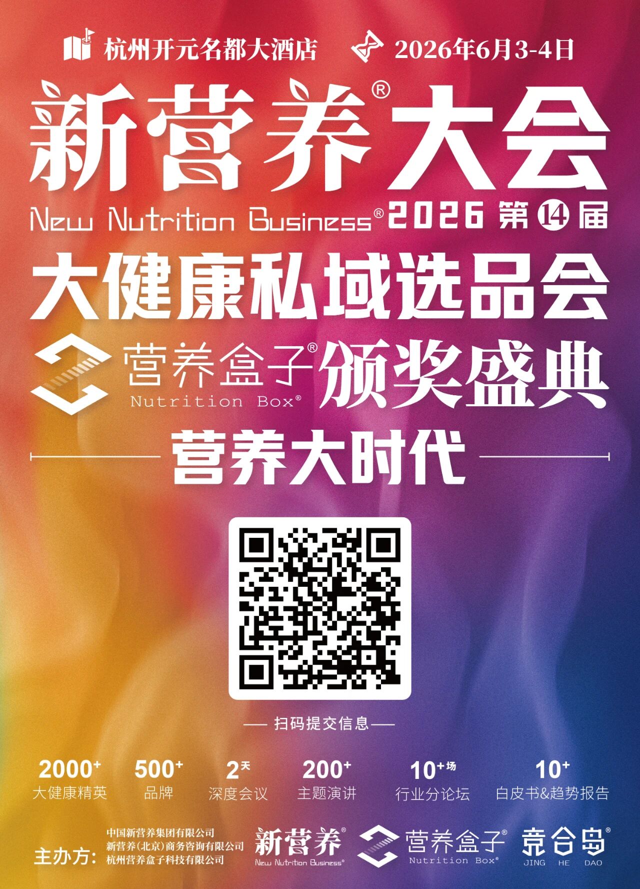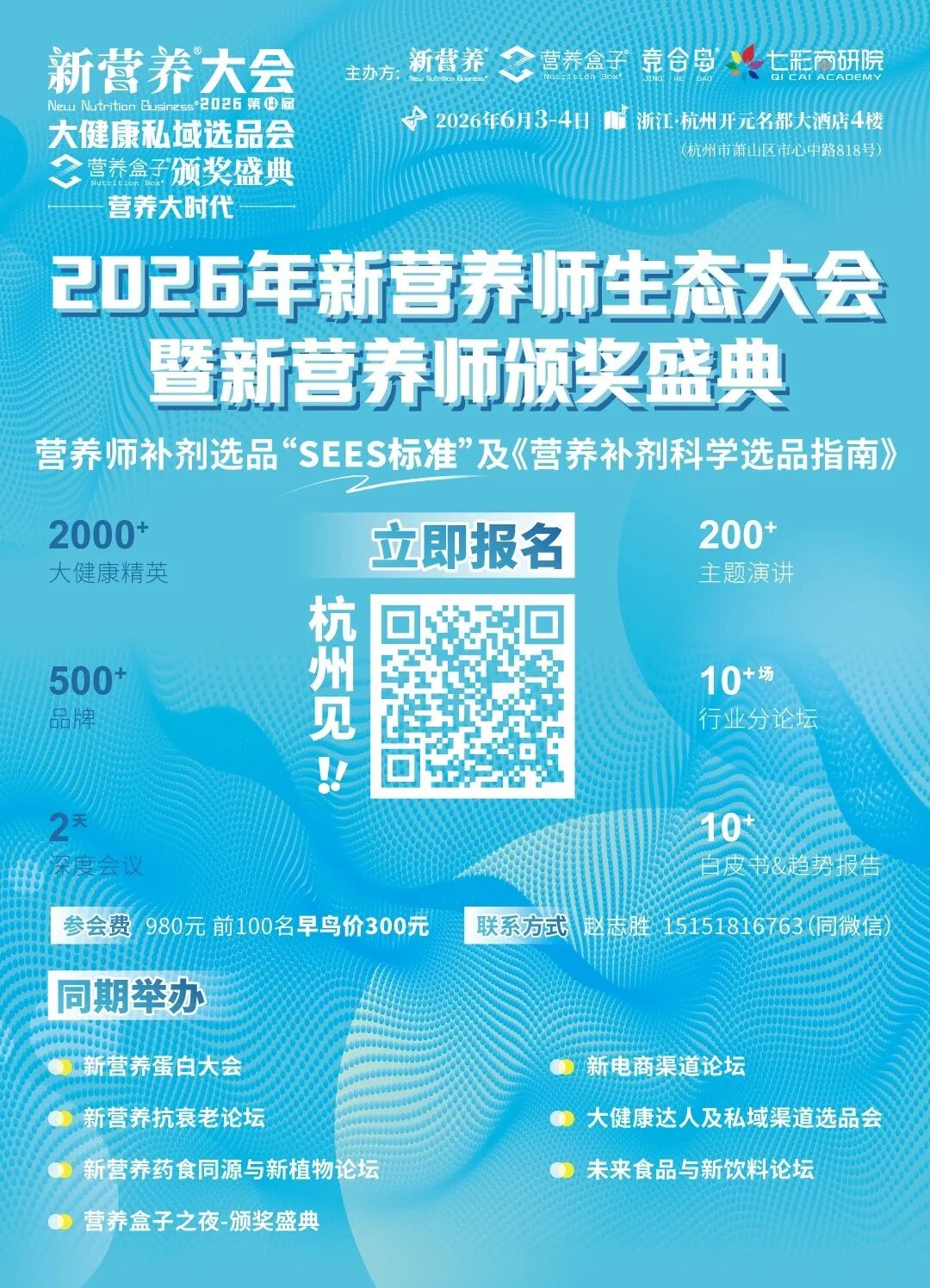 营养大时代!聚焦蛋白·抗衰·药食同源·未来食品·新饮料·营养师·渠道选品,2026新营养大会,6月3-4日,杭州见!