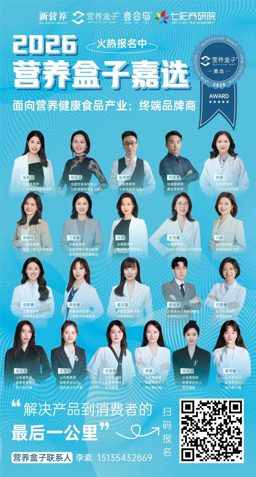 本次大赛由健康领域内容平台“新营养” 与营养师赋能机构 “七彩商研院” 联合发起,面向营养师、健康管理师、医生、运动教练等全品类大健康从业者。