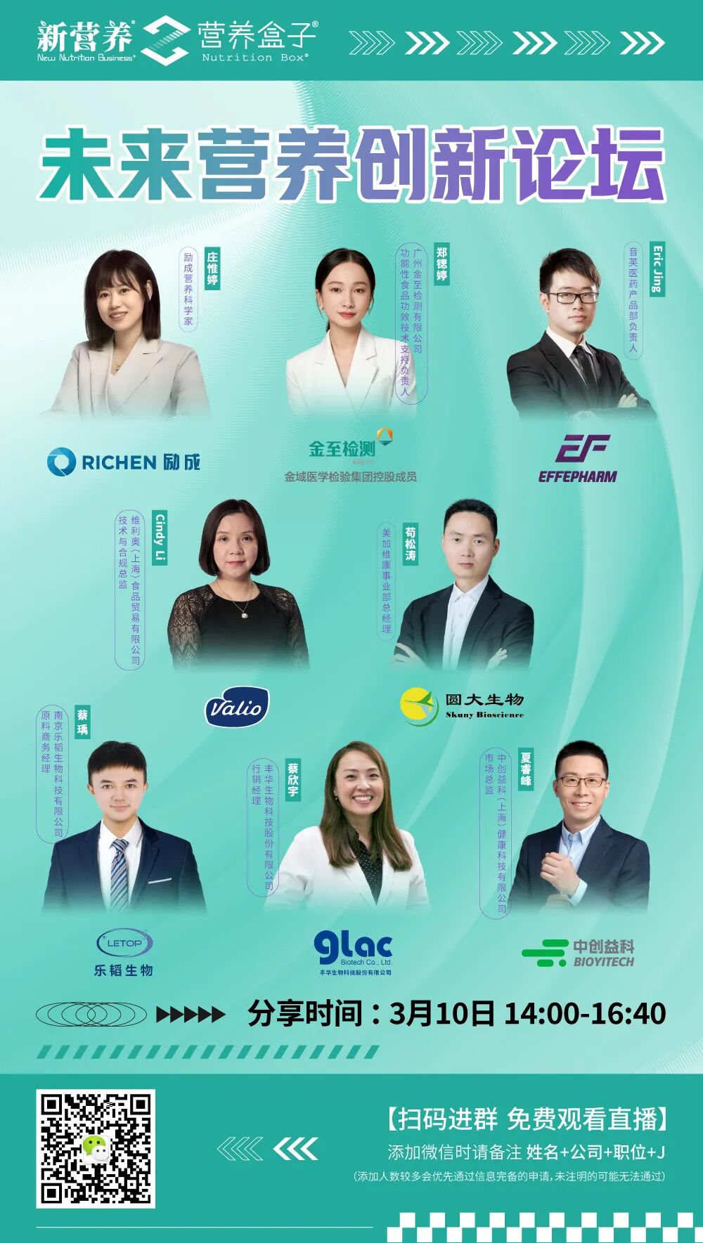 以创新引领未来,以科技驱动营养产业高质量发展。3月10日下午,诚邀您共赴新营养线上论坛,携手探索营养产业从科研到应用的全新可能!