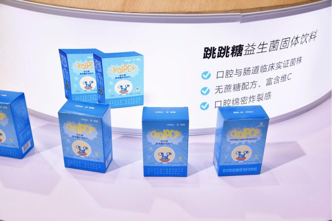 随着口腔健康问题趋于年轻化、普遍化,传统口腔护理产品体验单一、难以坚持,且益生菌菌株难以有效送达牙缝、牙龈沟等“卫生死角”,导致清洁效果大打折扣。针对这一痛点,均瑶润盈在展会现场推出OralPOP®跳跳糖剂型,添加3大经临床验证的核心口腔益生菌菌株,独特的剂型设计让菌株能够快速到达口腔各个部位,解决“菌株送达难”的物理难题,同时提升产品的趣味性,让口腔护理变得更易坚持。