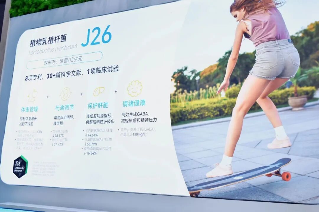 植物乳植杆菌J26菌株源自内蒙古通辽地区牧民自制传统发酵酸奶,历经二十年研发与优化,与单一功效菌株不同,J26具备“一菌多效”的核心优势,无论是活菌形态还是后生元形态,都能稳定发挥积极作用,同步覆盖体重管理、代谢调节、肝脏保护与情绪健康四大核心健康需求,精准契合当代消费者“一站式健康管理”的需求。
