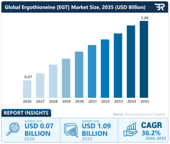 麦角硫因是一种天然含硫氨基酸,人体无法自主合成,需通过外源补充。Business Research Insights数据显示,2026年,全球麦角硫因[EGT]市场价值为0.7亿美元,预计到2035年将达到10.9亿美元。2026年至2035年,其复合年增长率(CAGR)约为36.2%。