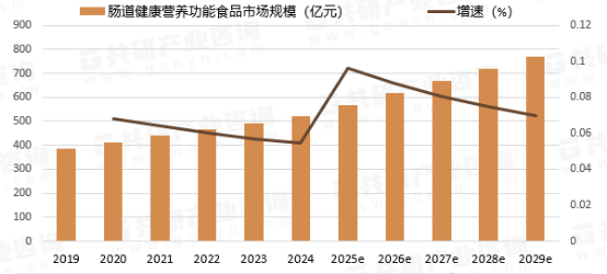 2019-2029年中国肠道健康营养功能食品市场规模预测