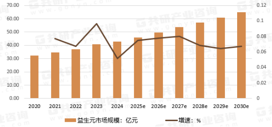 益生元作为益生菌的“食物来源”,常见的低聚果糖、低聚半乳糖、菊粉等益生元原料,科学研究证实了益生元对肠道健康的积极影响。《2026-2032年中国益生元行业深度调研与投资战略报告》显示,预计2030年我国益生元市场规模将达到65.08亿元。