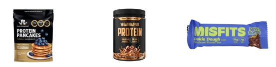 除了传统乳制品蛋白产品,植物-乳制品混合蛋白产品也成为创新热点。荷兰的Plantpowders香草味植物蛋白煎饼,采用欧洲蚕豆中的优质植物蛋白,搭配香草口味,为消费者提供早餐场景的全新选择;德国的Iron Brothers纯素咖啡师蛋白粉,以高品质蚕豆提取物与优质咖啡结合,经典咖啡口味适配职场人群的饮用习惯;英国的Misfits巧克力植物蛋白棒,融合豌豆蛋白、大豆蛋白和蚕豆蛋白,口感丰富,满足了消费者对植物蛋白产品的多样化需求。