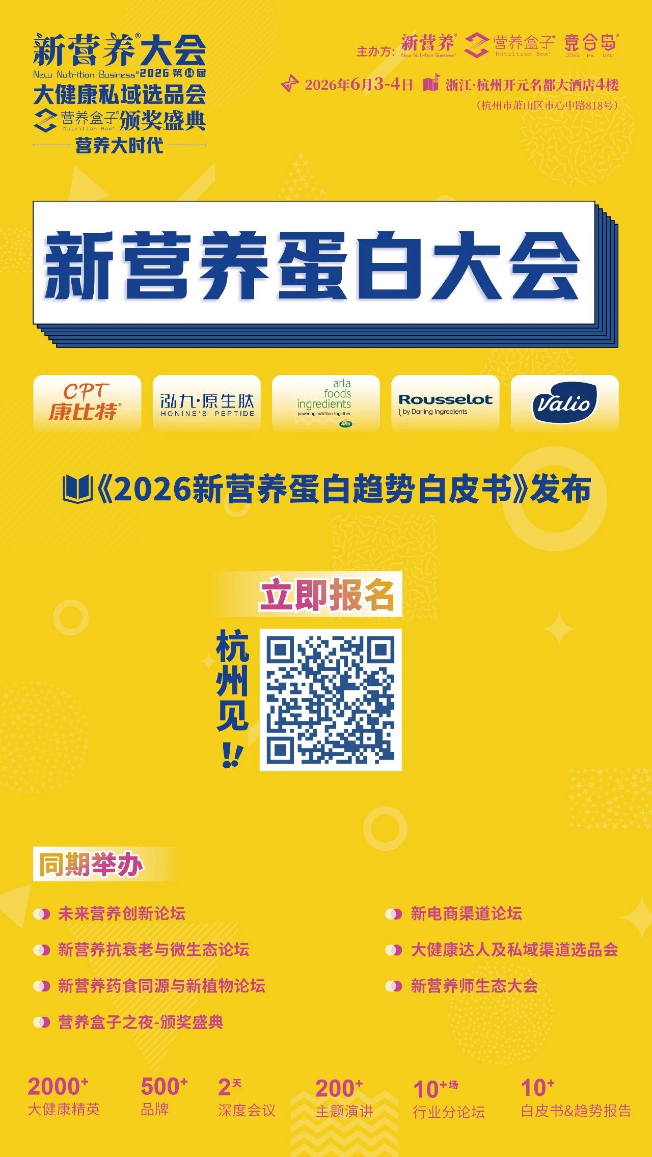 蛋白质是生命的基础,也是食品产业创新的核心驱动力。如今,蛋白创新已进入全域破局的新阶段,从场景拓展到技术升级,从产品创新到市场扩容,每一个环节都蕴含着巨大的发展机遇。6月4日,新营养蛋白大会将成为这场产业变革的“风向标”与“连接器”,汇聚行业力量,共探创新路径,推动蛋白产业实现更高质量的发展。