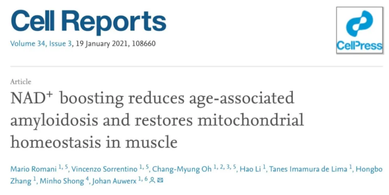 《Cell》子刊在2021年1月发布了一篇研究发现,与年龄有关的淀粉样变性是线粒体功能障碍的因素之一,通过恢复线粒体稳态的干预措施(补充NAD+)可以降低这些沉积物的可逆性。此外还能减少衰老过程中淀粉样蛋白沉积物的积累足以改善肌肉线粒体的体内平衡,进而大幅延缓肌肉衰老,对健康和寿命产生积极影响。