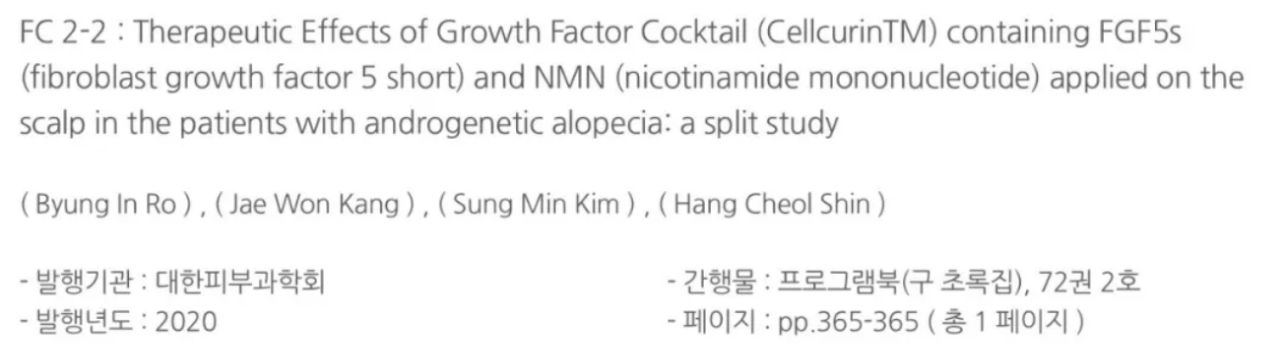 脱发作为当代年轻人的一大困扰,防脱发、保卫发际线,成为不少人的“头”等大事。韩国恒哲信(Hang Cheol Shin)教授等人,通过利用微纤维技术将NMN配合生长因子鸡尾酒Cellcurin™植入了20位患有雄激素性脱发的患者头皮中。