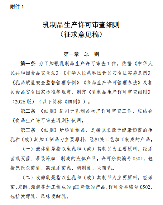 附件:1.乳制品生产许可审查细则(征求意见稿)(节选)