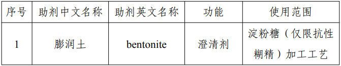 膨润土作为食品工业用加工助剂已列入《食品安全国家标准 食品添加剂使用标准》(GB 2760),作为吸附剂、助滤剂、澄清剂、脱色剂用于葡萄酒、果酒、果蔬汁、固体饮料等的加工工艺,本次公告扩大使用范围,作为澄清剂用于淀粉糖(仅限抗性糊精)加工工艺,发挥澄清作用。经安全性评估,膨润土在淀粉糖(仅限抗性糊精)加工工艺中可以安全使用,其质量规格执行《食品安全国家标准 食品添加剂膨润土》(GB 1886.63)。美国食品药品管理局、法国食品安全局、澳大利亚和新西兰食品标准局等允许其用于抗性糊精加工工艺。